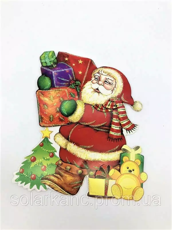 Новорічний плакат "Santa Claus" наклейка мікс (930-1, ST17, 28х24 см, 1/960/12)